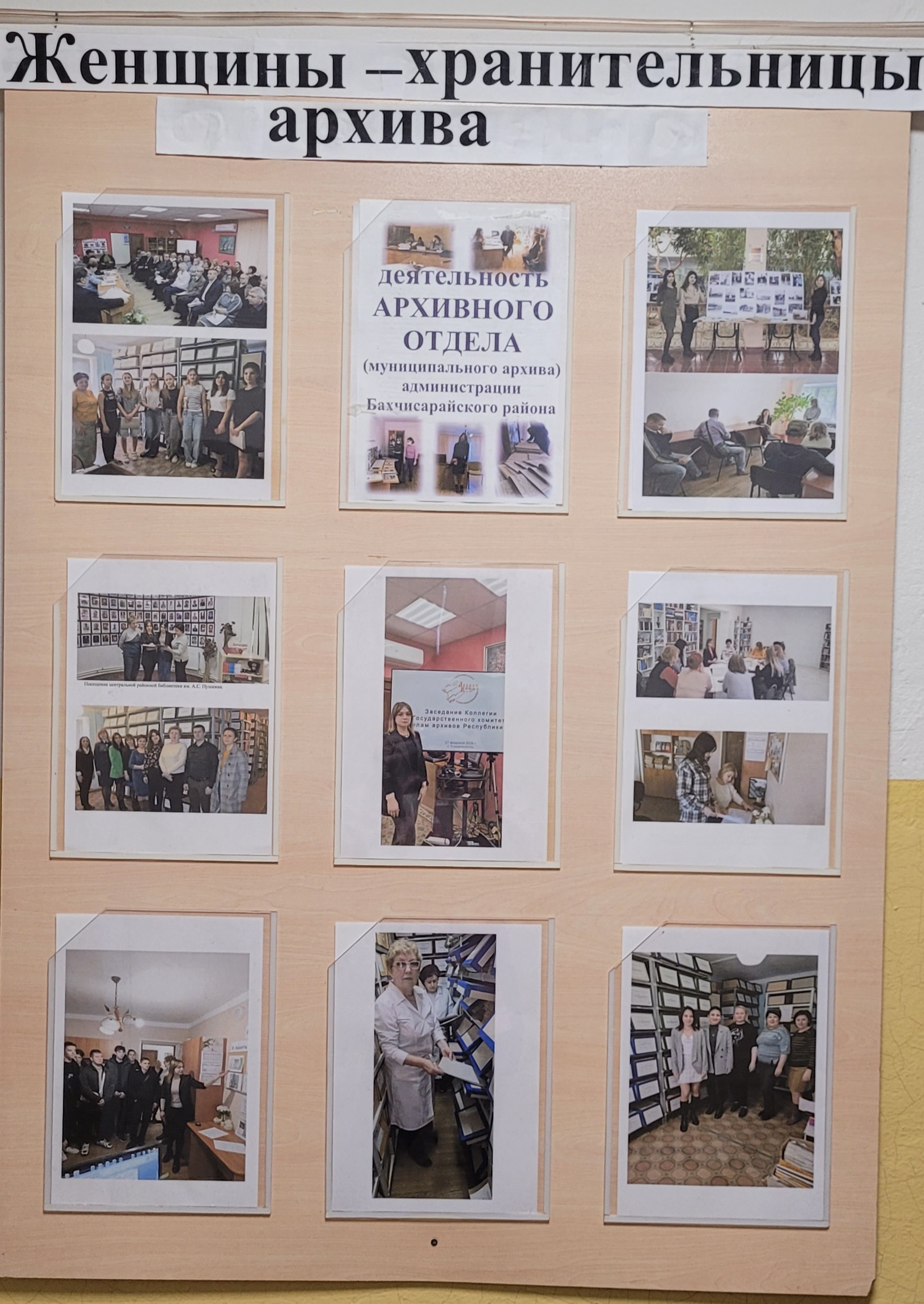 20260306 093357В преддверии празднования Международного женского дня, архивный отдел (муниципальный архив) администрации г. Бахчисарая подготовил выставочный стенд о женщинах-хранительницах истории города и района.