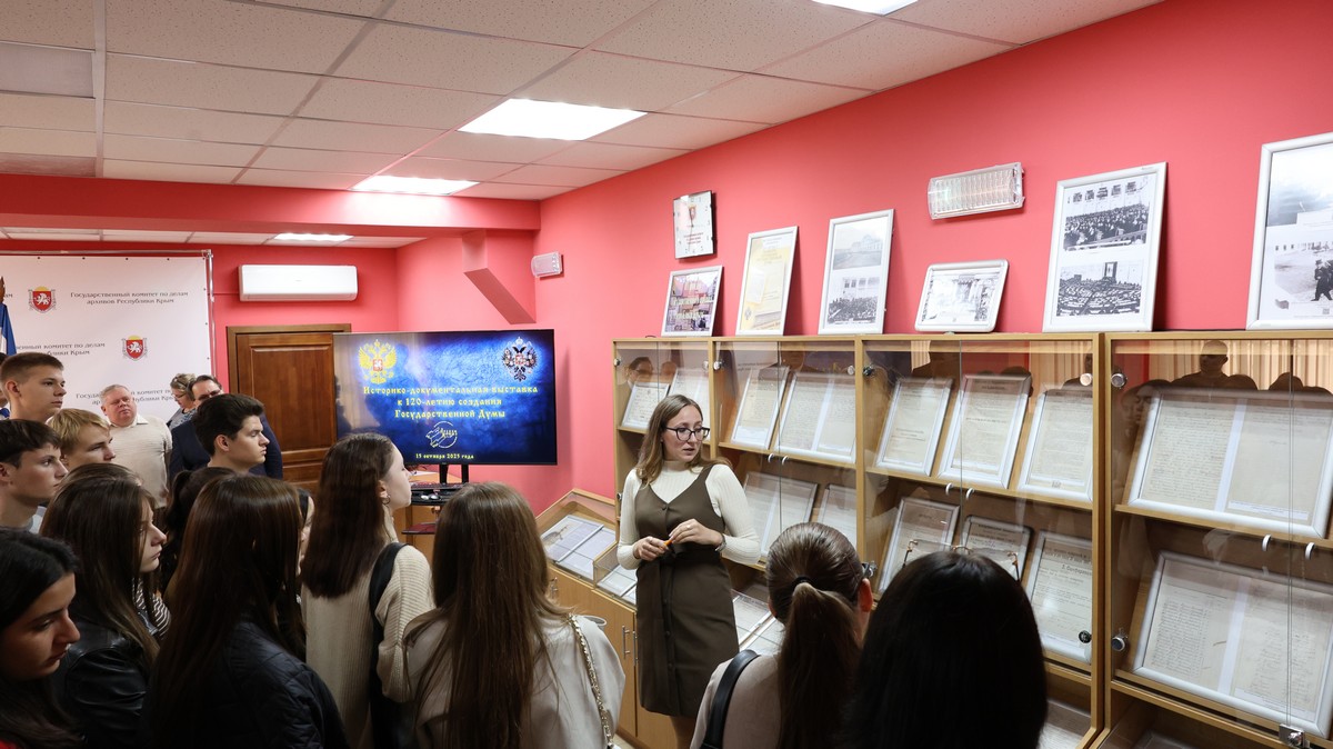 На выставке впервые представлены уникальные документы из фондов Государственного архива Республики Крым, которые рассказывают о деятельности Государственной Думы в Крыму. В числе экспонатов — указы Николая II о предоставлении избирательных прав различным классам населения, документы Таврического губернского Правления и Правительствующего Сената, а также письма Симферопольской городской Управы, отражающие процесс становления Думы как законодательного органа власти.