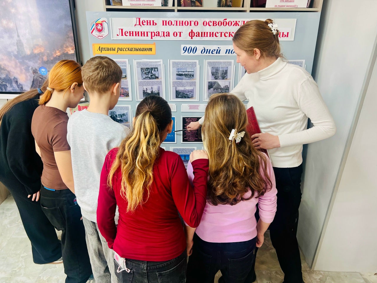Архивным отделом (муниципальным архивом) администрации Нижнегорского района, совместно с МЦРБ им. Н.В. Гоголя и главным специалистом отдела по вопросам молодёжи и спорта администрации района, для учащихся МБОУ «Нижнегорская средняя общеобразовательная школа № 2» проведён час памяти «Ленинград. Блокада. Память». В ходе мероприятия ребята ознакомились с героической стойкостью защитников и жителей блокадного Ленинграда, углубили свои знания о трагических событиях и историческом значении блокады, тем самым сохраняя память о подвиге ленинградцев.
