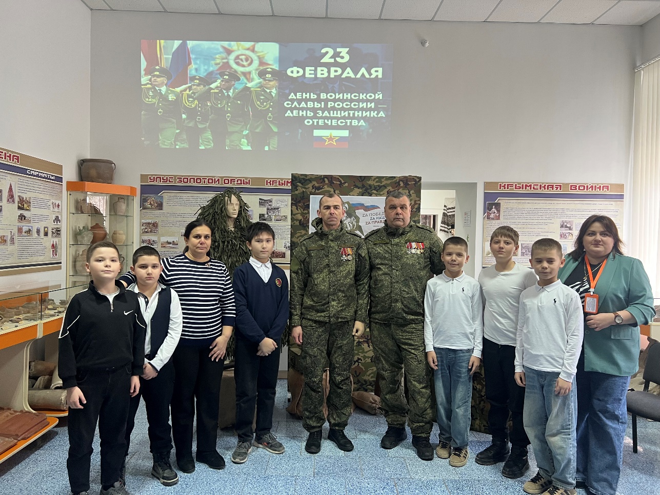 Архивный отдел (муниципальный архив) принял участие в мероприятии посвященном Дню защитника Отечества «Гордимся защитниками земли российской», подготовленным МКУК «Белогорским районным историко-краеведческим музеем» РК с участниками СВО и с учащимися МБОУ «Белогорская средняя школа № 4 имени Бекира Чобан-заде» и студентами Белогорского технологического техникума.