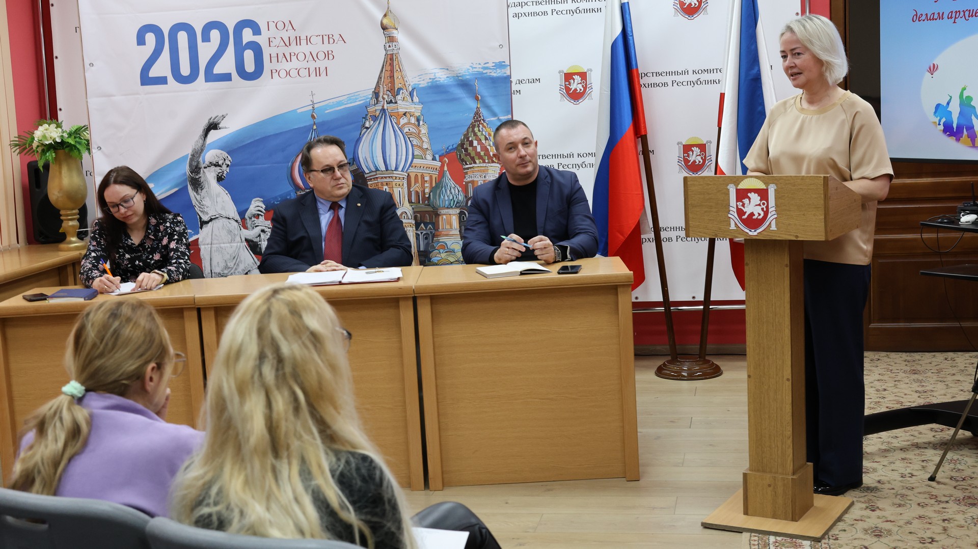 На мероприятии выступили: директор Государственного архива Республики Крым новейшей истории и по личному составу Лина Титоренко, исполняющий обязанности директора Государственного архива Республики Крым Валерий Гришков, а также руководители профсоюзных комитетов государственных архивов Антонина Фадеева и Светлана Ефанова, которые подчеркнули важность кадрового потенциала и создания условий для профессионального развития молодых специалистов.