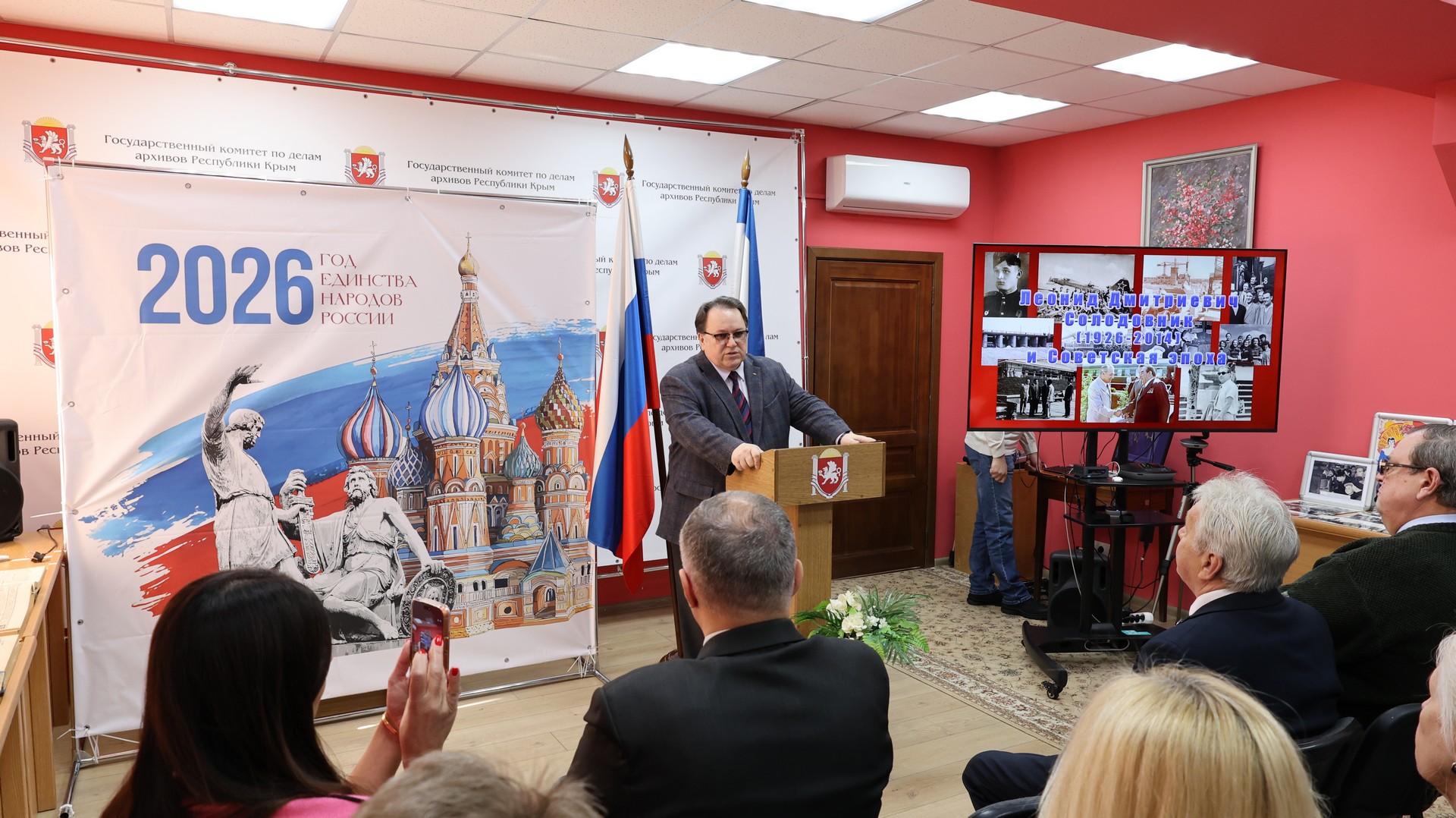 В выставочном зале Государственного комитета по делам архивов Республики Крым состоялось торжественное открытие выставки, посвященной 100-летию со дня рождения советского партийного деятеля Леонида Дмитриевича Солодовника.
