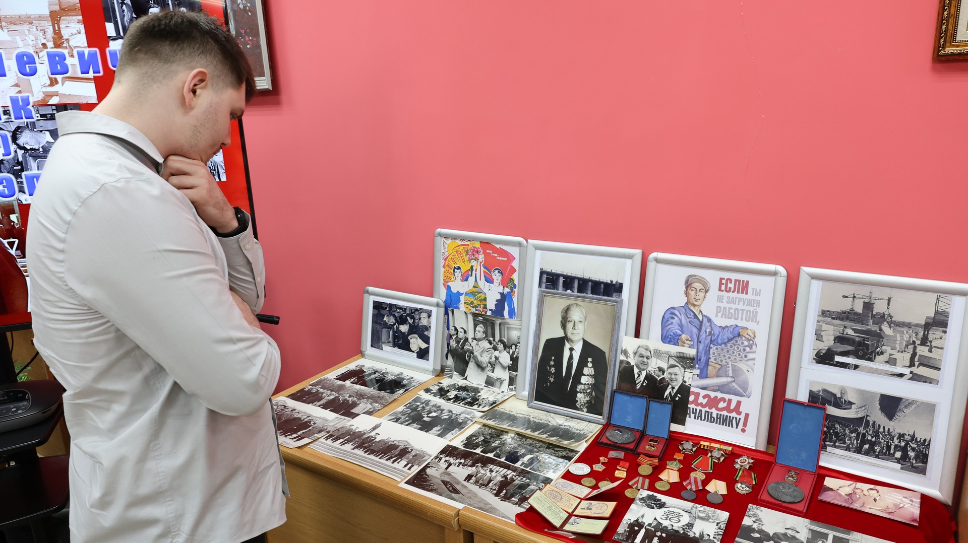 На выставке представлены документы, награды и личные вещи от семьи Леонида Дмитриевича Солодовника.