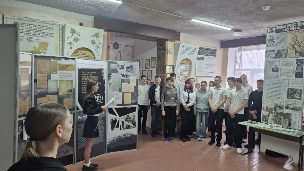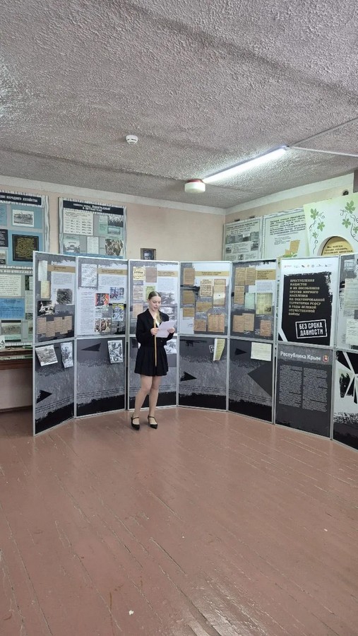 Активисты школьного музея «Боевой и трудовой славы с. Кольчугино» познакомили учащихся школы с архивными материалами, представленными на выставке. В экспозицию вошли документы из фондов ГКУ РК «Государственный архив Республики Крым» и федеральных архивов, отражающие отдельные аспекты реализации нацистами и их пособниками политики геноцида советского народа, в частности террор в отношении мирного населения полуострова, агитационно-пропагандистскую деятельность, сопровождавшую наборы остарбайтеров, создание тяжелых условий для жизни и труда, а также ущерб, нанесенный сельскому хозяйству, промышленности, здравоохранению и образованию Крыма.