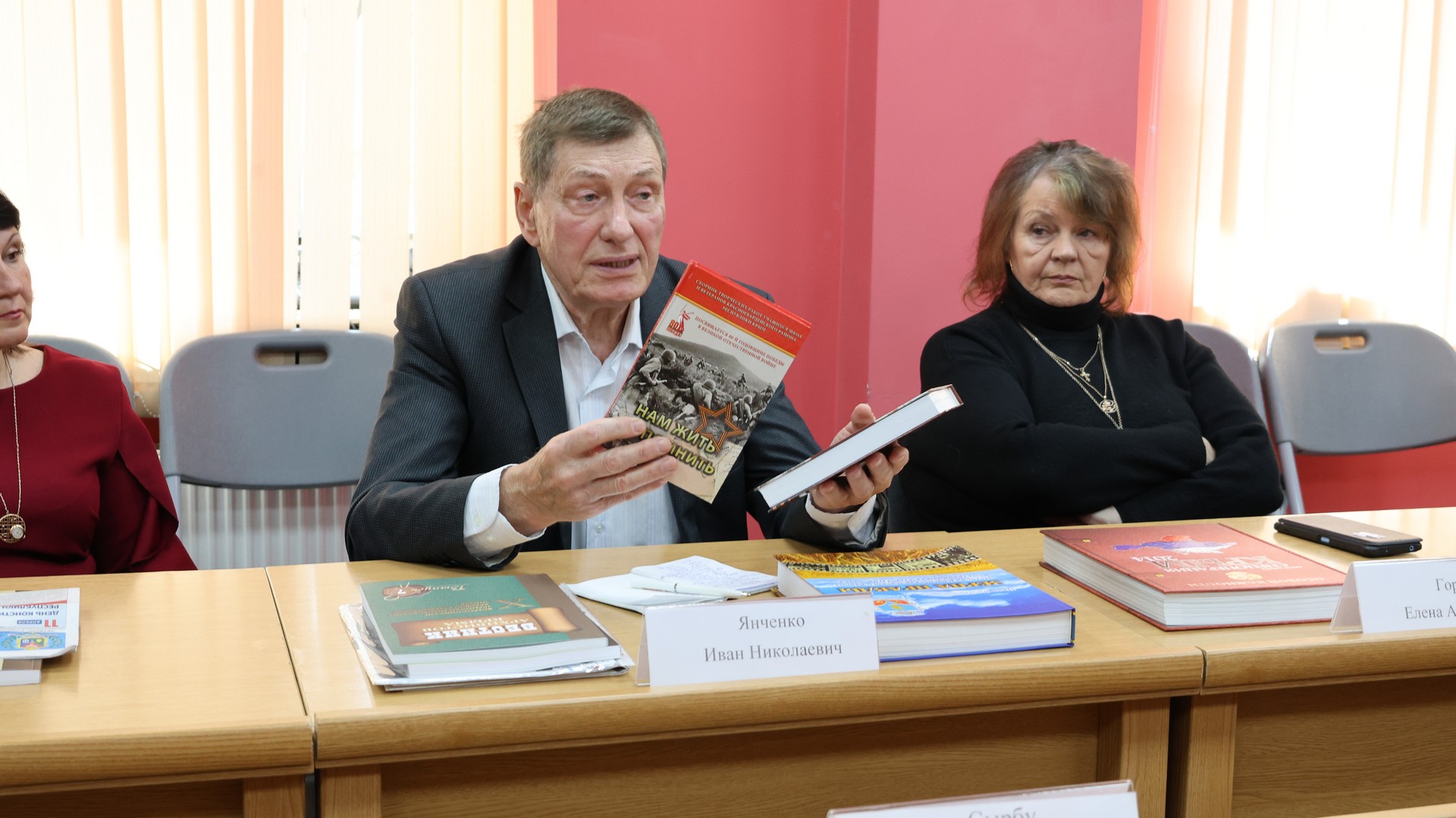 В обсуждении приняли участие: заслуженный журналист Украины, почётный председатель Крымского отделения Союза журналистов России, заместитель председателя Общественного совета при Государственном комитете по делам архивов Республики Крым, член жюри конкурса «Судьба моей семьи в судьбе моей страны» Людмила Хорошилова, директор АНО «Медиацентр «Керчь» Валерий Семёнов, заслуженный журналист России, главный редактор газеты «Огни Маяка» Красногвардейского района Иван Янченко, заслуженный журналист Крыма, лауреат Государственной премии РК, автор исторических телепроектов Александр Шилко, доктор филологических наук, профессор кафедры журналистики Института медиакоммуникаций, медиатехнологий и дизайна Крымского федерального университета им. В.И. Вернадского Наталья Яблоновская, главный редактор газеты «Сельский труженик Крыма» Симферопольского района Елена Андрющенко, член Крымского республиканского отделения Российского общества историков-архивистов, корреспондент газеты «Ялтинские вести» Наталия Сырбу, заслуженный журналист Крыма, член жюри конкурса «Судьба моей семьи в судьбе моей страны» Елена Горная, заведующий архивным сектором (муниципальным архивом) администрации Кировского района Наталья Слабоспицкая, начальник архивного отдела (муниципального архива) администрации г. Джанкоя, заслуженный архивист Крыма Наталья Спажакина, директор Государственного архива Республики Крым новейшей истории и по личному составу Лина Титоренко, заместитель директора Государственного архива Республики Крым, заслуженный архивист Крыма Наталья Кравченко.