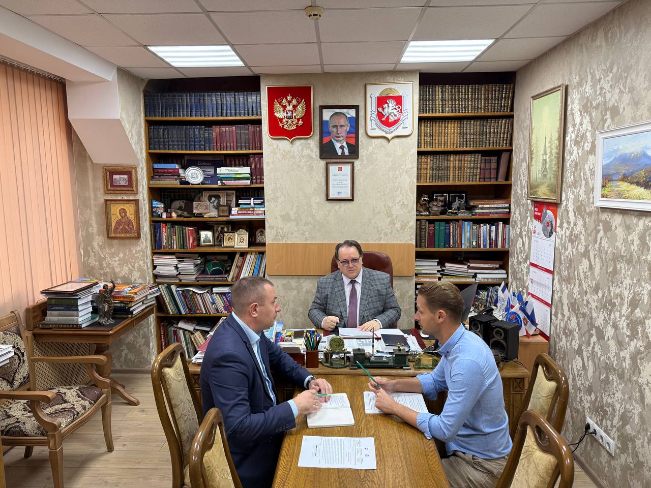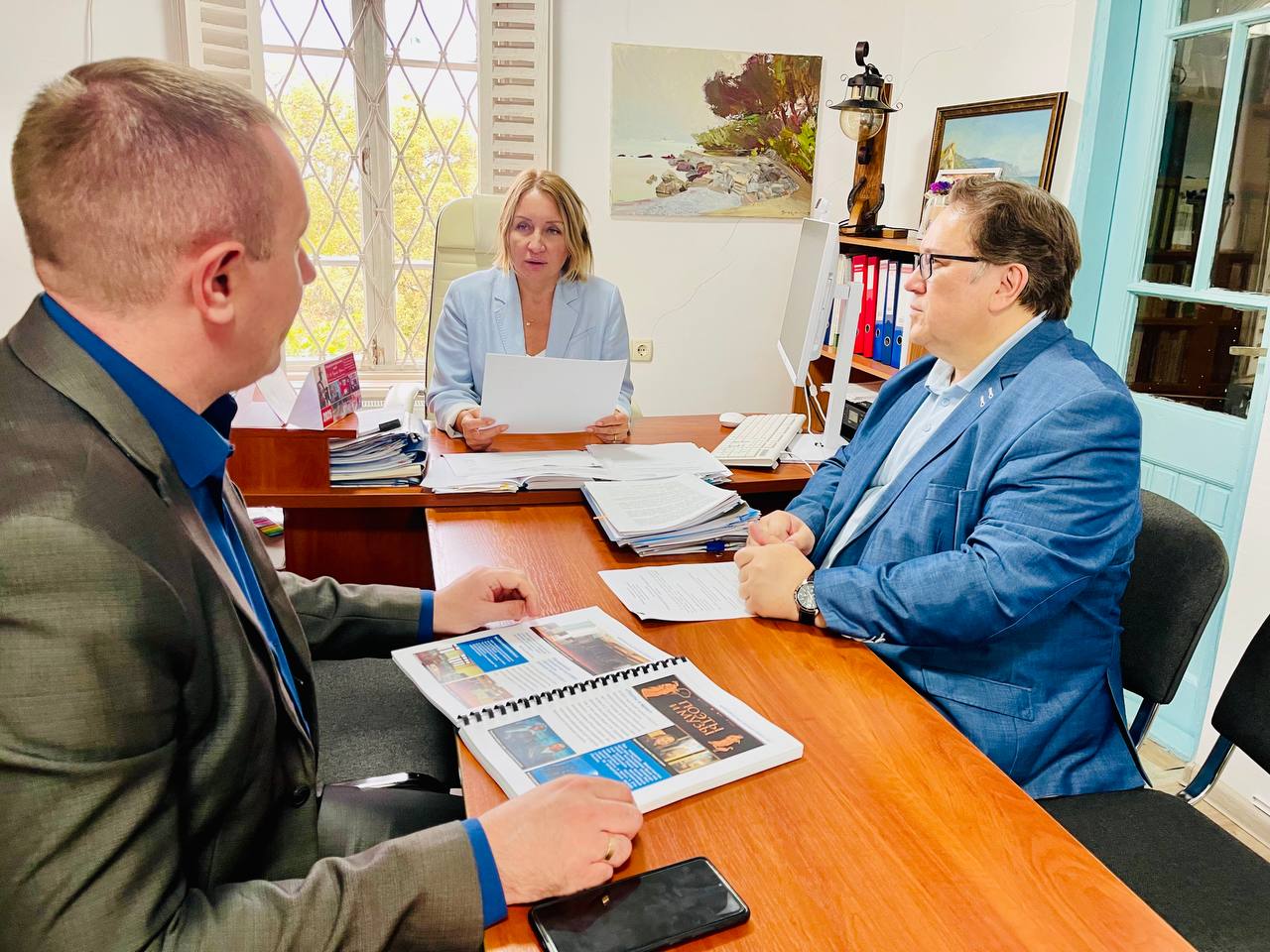 В Федерации профсоюзов Крыма состоялось совещание председателя Государственного комитета по делам архивов Республики Крым Олега Лобова с председателем Межрегиональной организации Профсоюза госучреждений Крыма Виктором Сазоновым. В совещании приняла участие председатель Ростовской областной организации Профсоюза, Наталья Воронина.