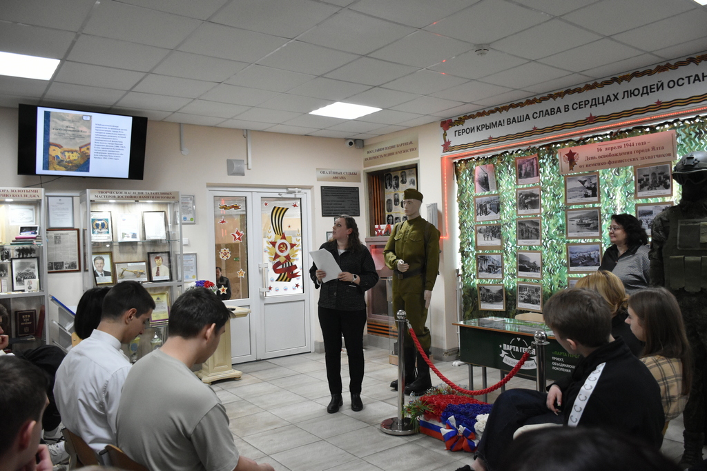 В ходе мероприятия сотрудники управления рассказали об истории образования архива в городе Ялта с 1926 года и по настоящее время, об особенностях работы в архивной отрасли, об основных видах работ, о документах, которые находятся на государственном хранении. Татьяна Малиновская продемонстрировала присутствующим презентацию и осветила события, которые происходили в Ялте в оккупационный период, а именно: уничтожение жилого фонда города, промышленных и культурных учреждений; массовый расстрел евреев и других местных жителей; показательная казнь партизан на Набережной Ялты; отправка людей в лагеря для военнопленных в Симферополь и Германию. Рассказала интересные истории из книги «Жизнь в оккупированной Ялте» автора Николая Дешкина, который жил в Ялте в оккупационный период и вёл личный дневник, а также об особенностях восстановления Ялты в послевоенный период.