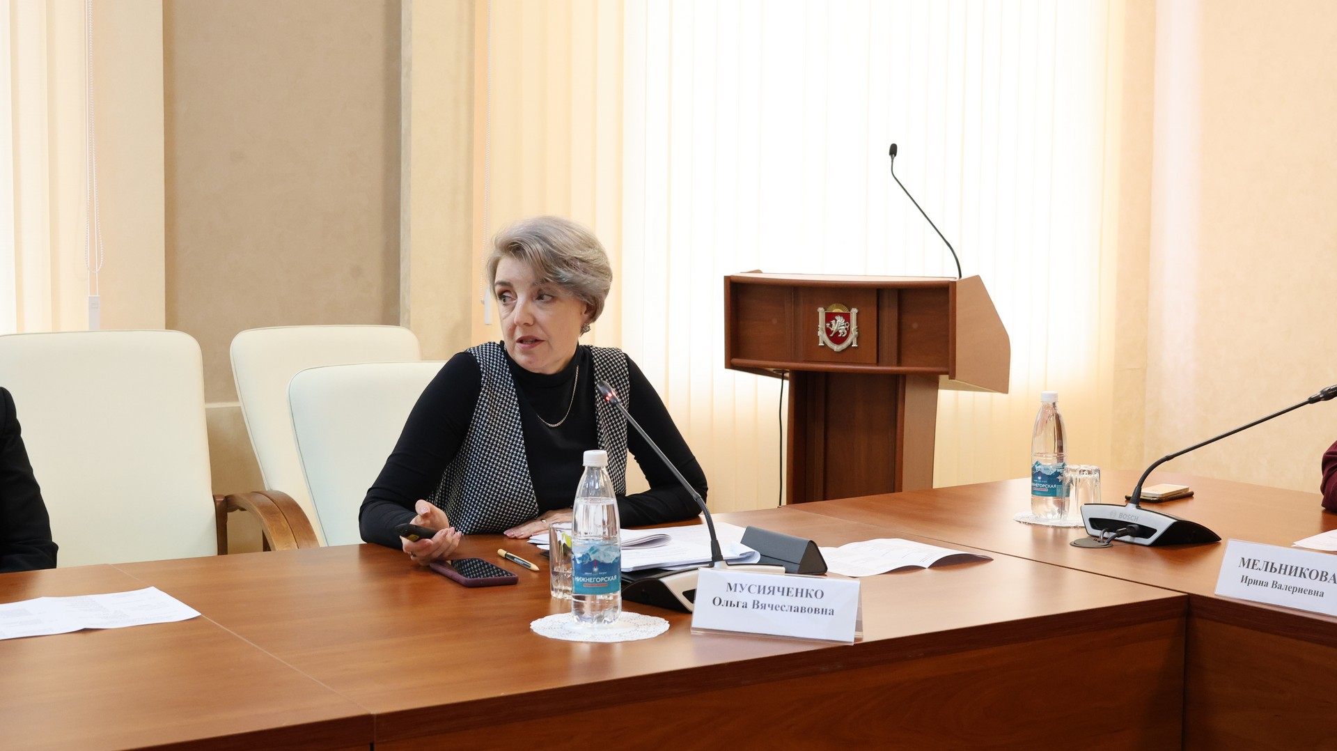 В рамках работы круглого стола опытом и положительными результатами сотрудничества с государственным комитетом и архивом поделились заведующий сектором архивной работы управления государственной гражданской службы, противодействия коррупции и архивной работы Министерства имущественных и земельных отношений Республики Крым Светлана Якутина и главный консультант отдела по работе с локальными актами и организационной работе управления по делопроизводству Министерства экологии и природных ресурсов Республики Крым Марина Агеева.
