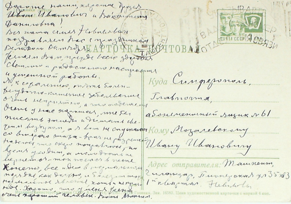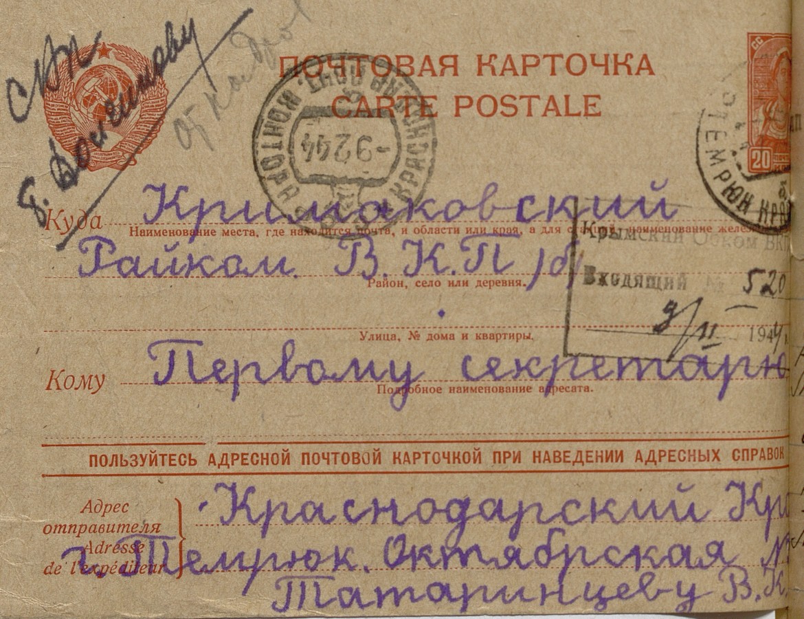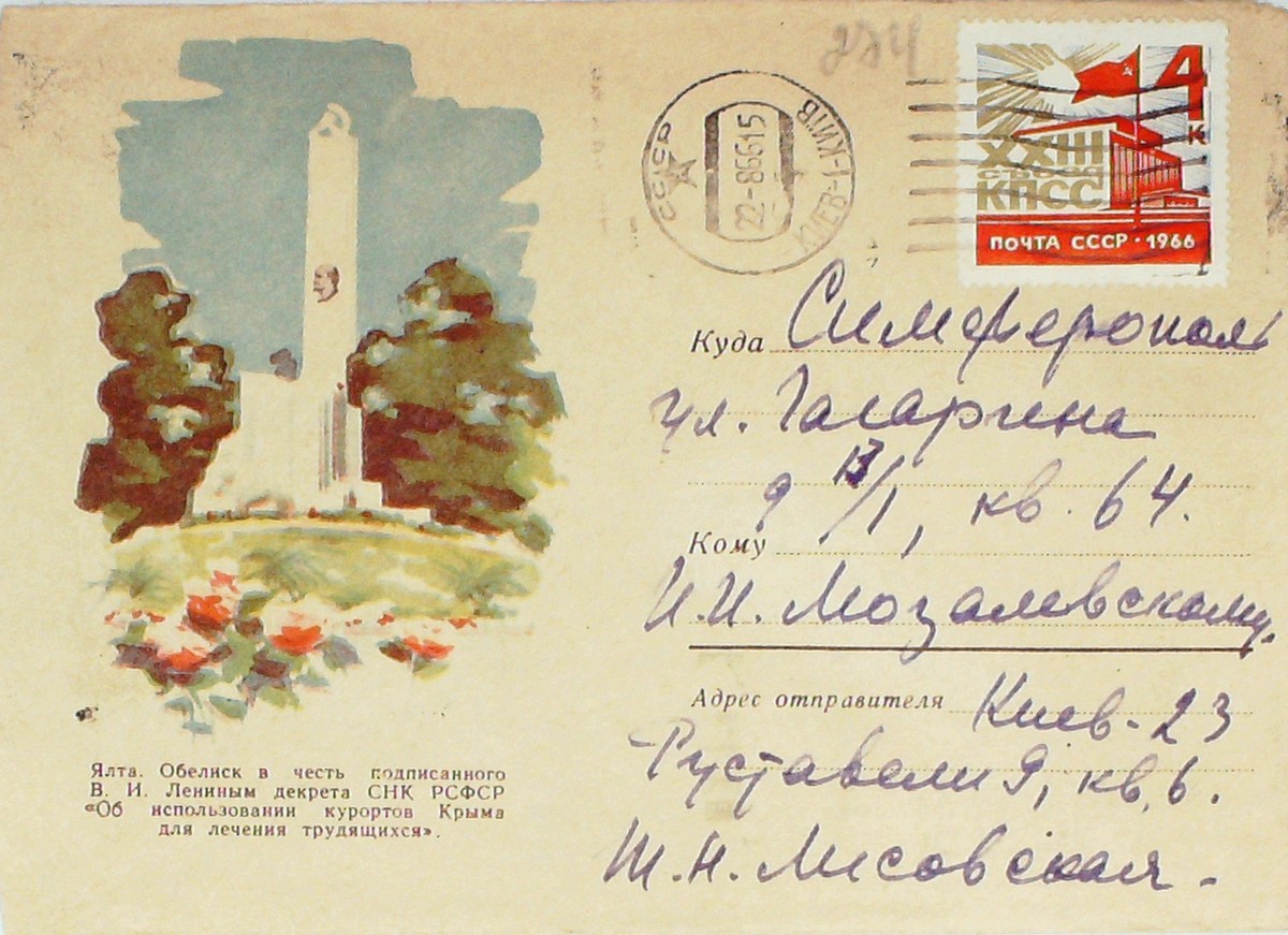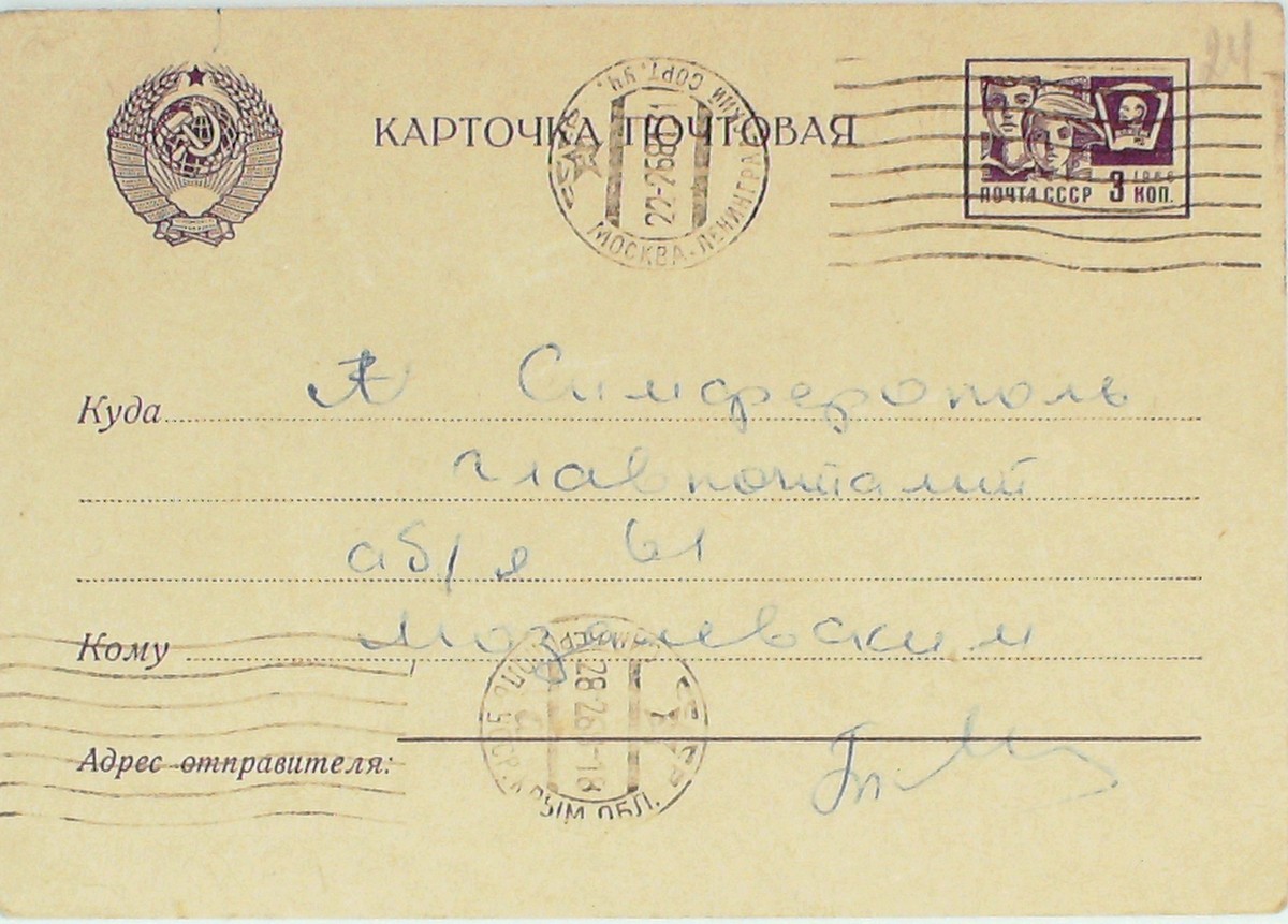 Ко Дню филателии Государственный архив Республики Крым подготовил подборку документов – почтовые карточки и конверты с марками советского периода. На представленных марках и конвертах отображены: государственная символика, архитектурные памятники, достижения в науке и технике, значимые события и личности в жизни страны.