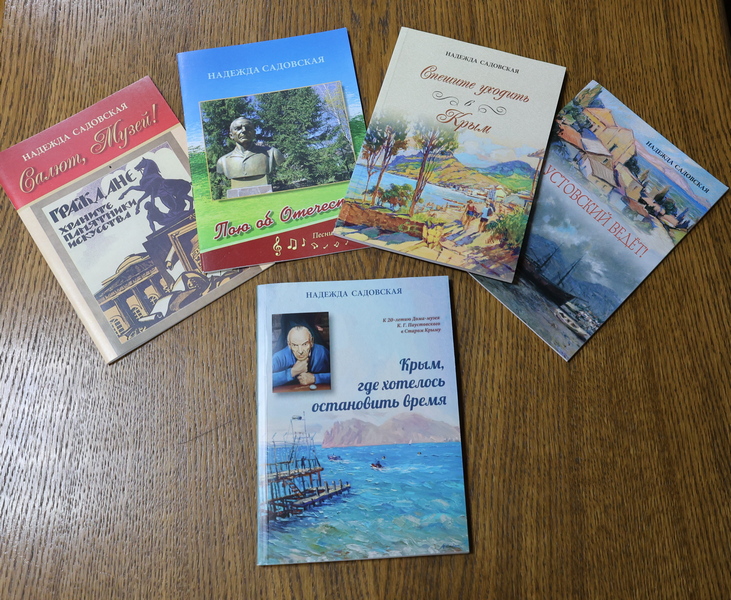 За плечами Надежды Садовской огромный опыт служения музейному делу в гг. Москва, Санкт-Петербург, Киев, Феодосия, Старый Крым, Симферополь. Она автор более десятка книг и брошюр, значительного числа газетных и журнальных статей и монографий. И все они проникнуты большой любовью к Крыму и уважением к его истории.