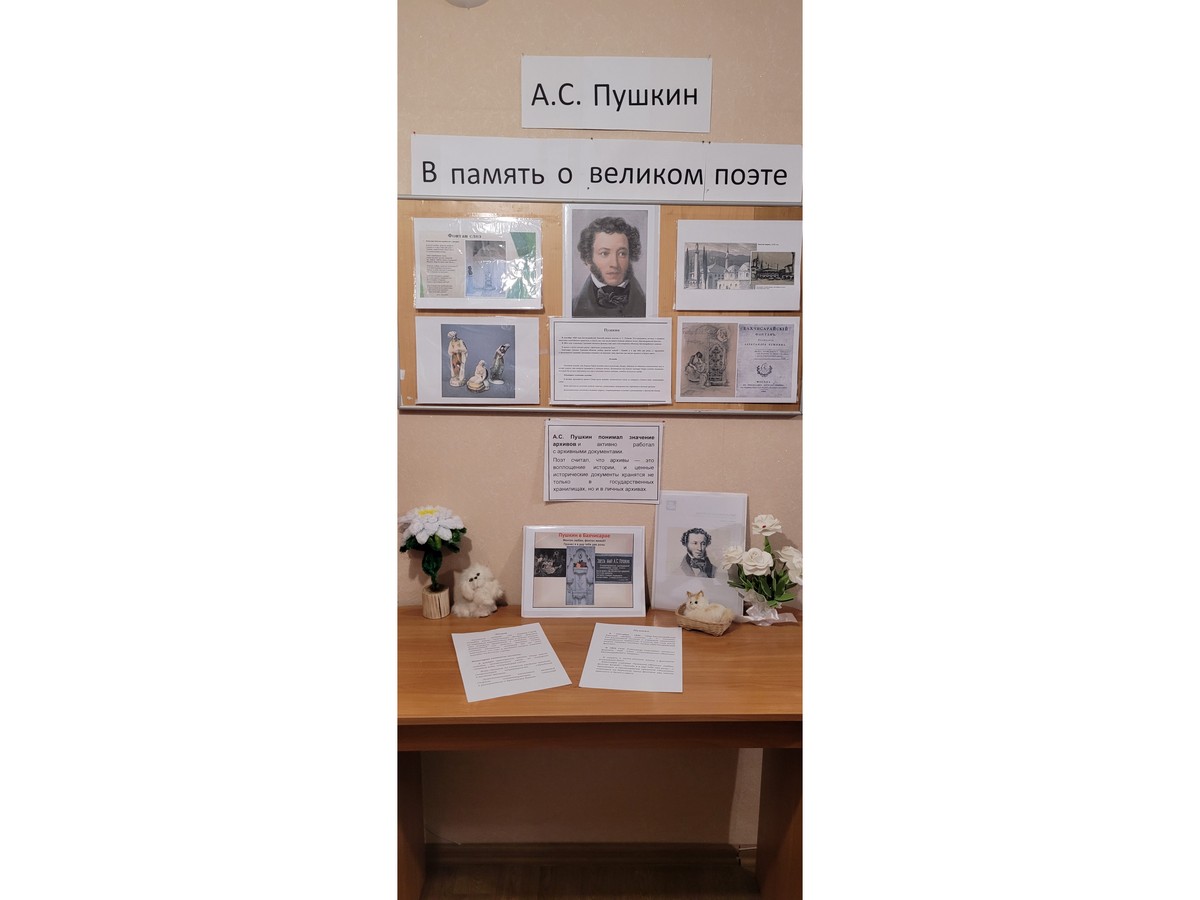 В рамках Декады архивных учреждений сотрудники архивного отдела (муниципального архива) администрации Бахчисарайского района организовали выставочный стенд «В память о великом поэте», посвящённый великому поэту Александру Сергеевичу Пушкину.