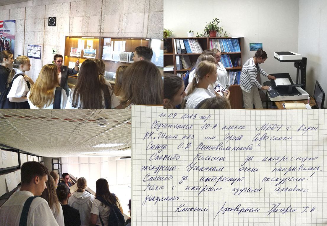 Ученики 10-А класса МБОУ г. Керчи РК «Школа № 23 им. Героя Советского Союза С.Д. Пошивальникова» под руководством преподавателя Татьяны Григорян побывали на экскурсии в МКУ «Муниципальный архив города Керчи».
