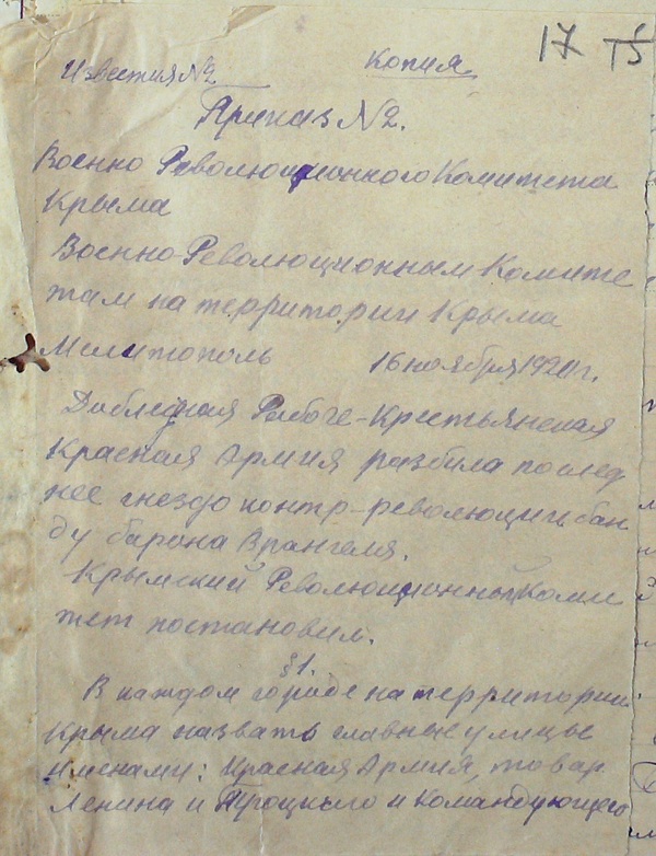 21 февраля 1921 г. в Симферополь прибыл Михаил Харитонович Поляков, назначенный по решению ЦК РКП(б) вместо Бела Куна председателем Крымревкома и членом Крымского обкома РКП(б). Выступая на заседании ревкома, он указал, что в административном отношении Крым будет подчинен Москве, что касается будущей судьбы полуострова, то она будет решена трудовыми массами Крыма. Это его выступление 23 февраля 1921 г. процитировала газета «Красный Крым».