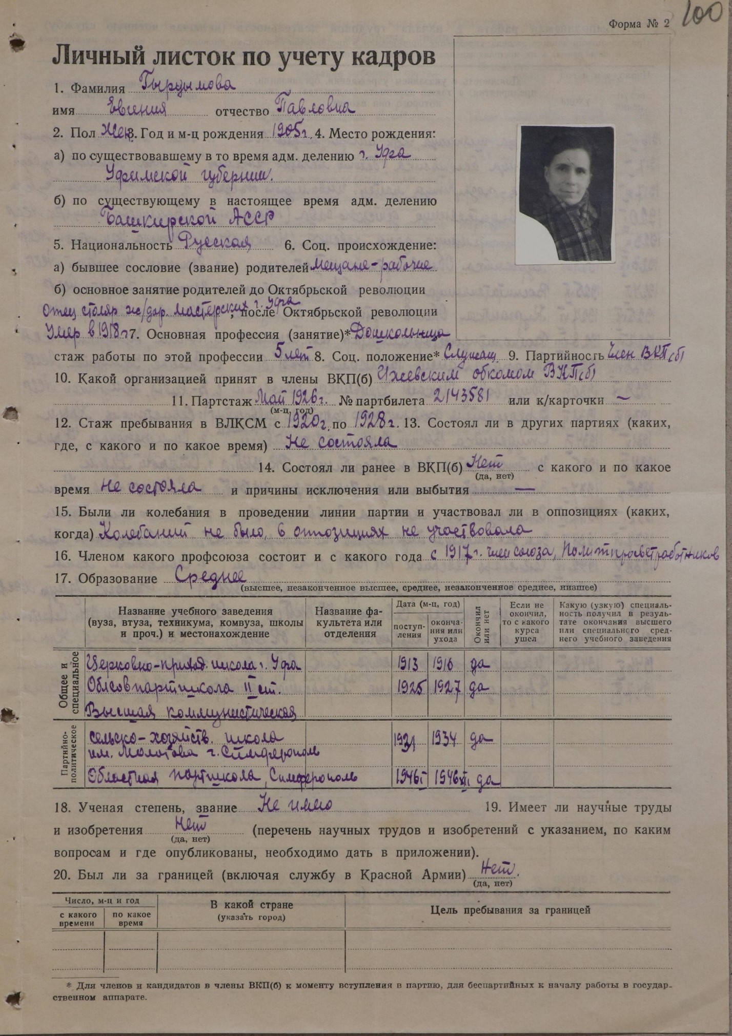 В выставке представлен личный учетный листок с её фотографией, а также автобиография с ценными сведениями об обороне Севастополя, которые хранятся в фонде 315, оп. лд., д. 45.