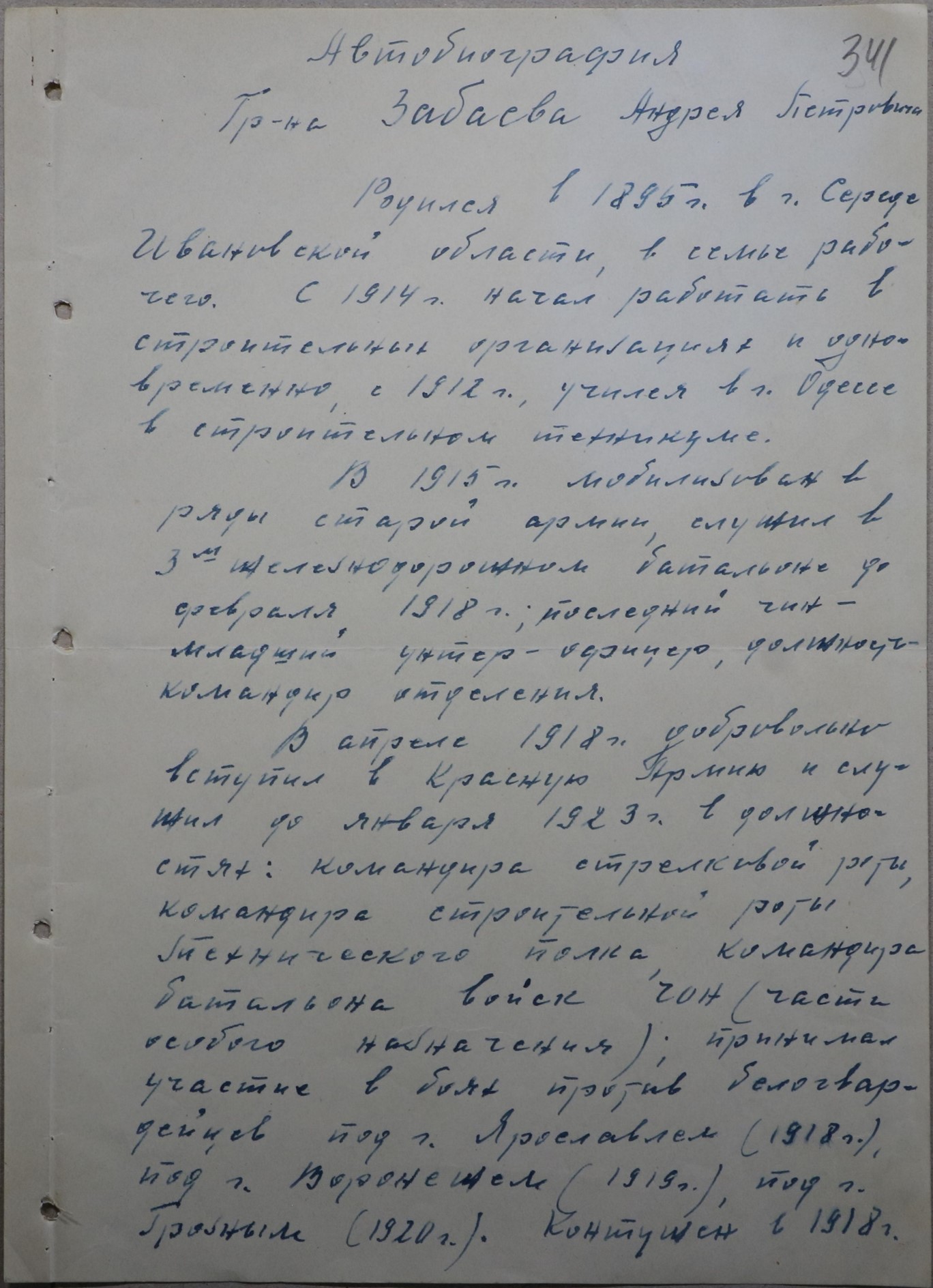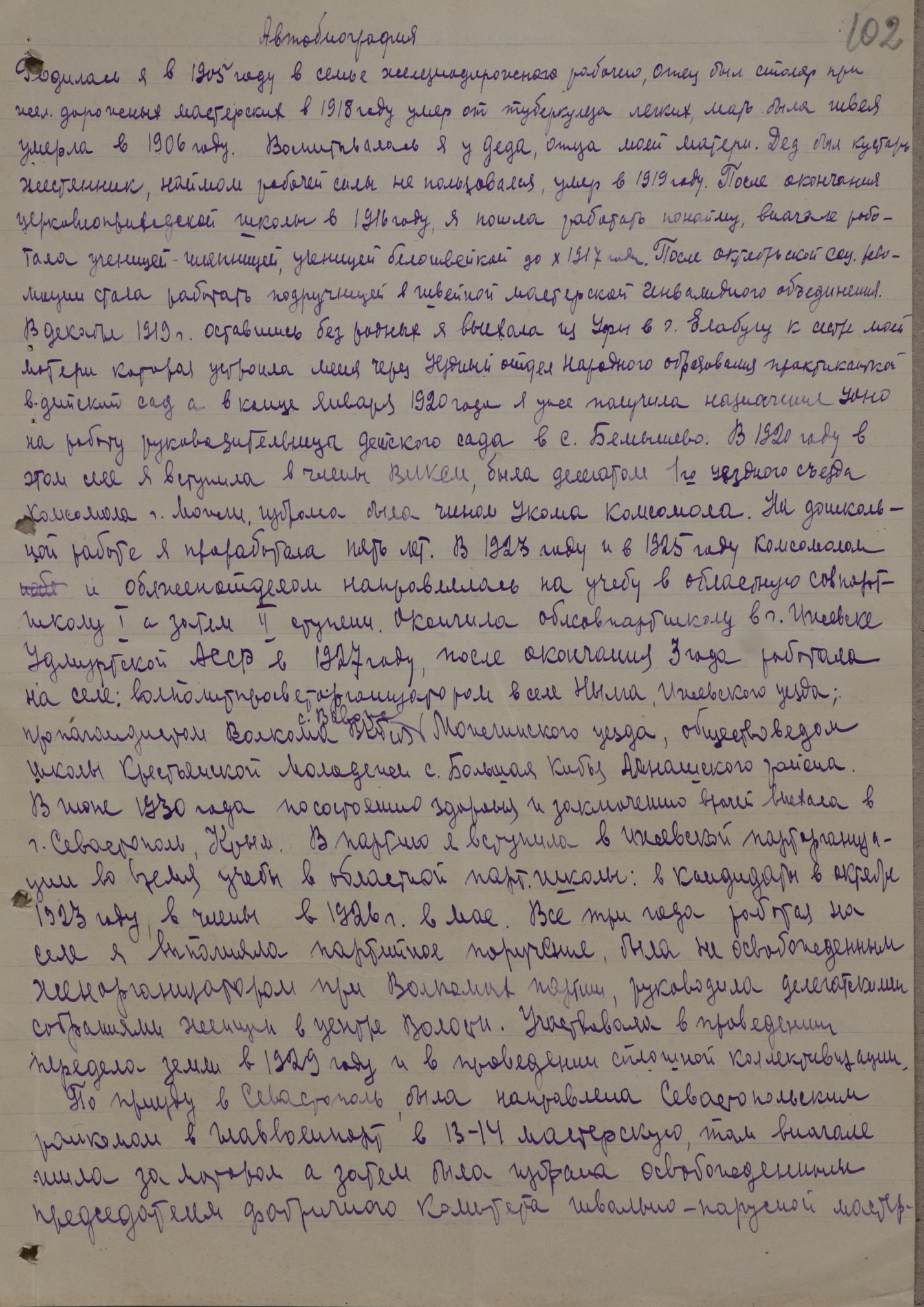 Из автобиографии хранящейся в ГАРК НС и ЛС (Ф. 315. Оп. Лд. Д. 6. Л. 341-343):