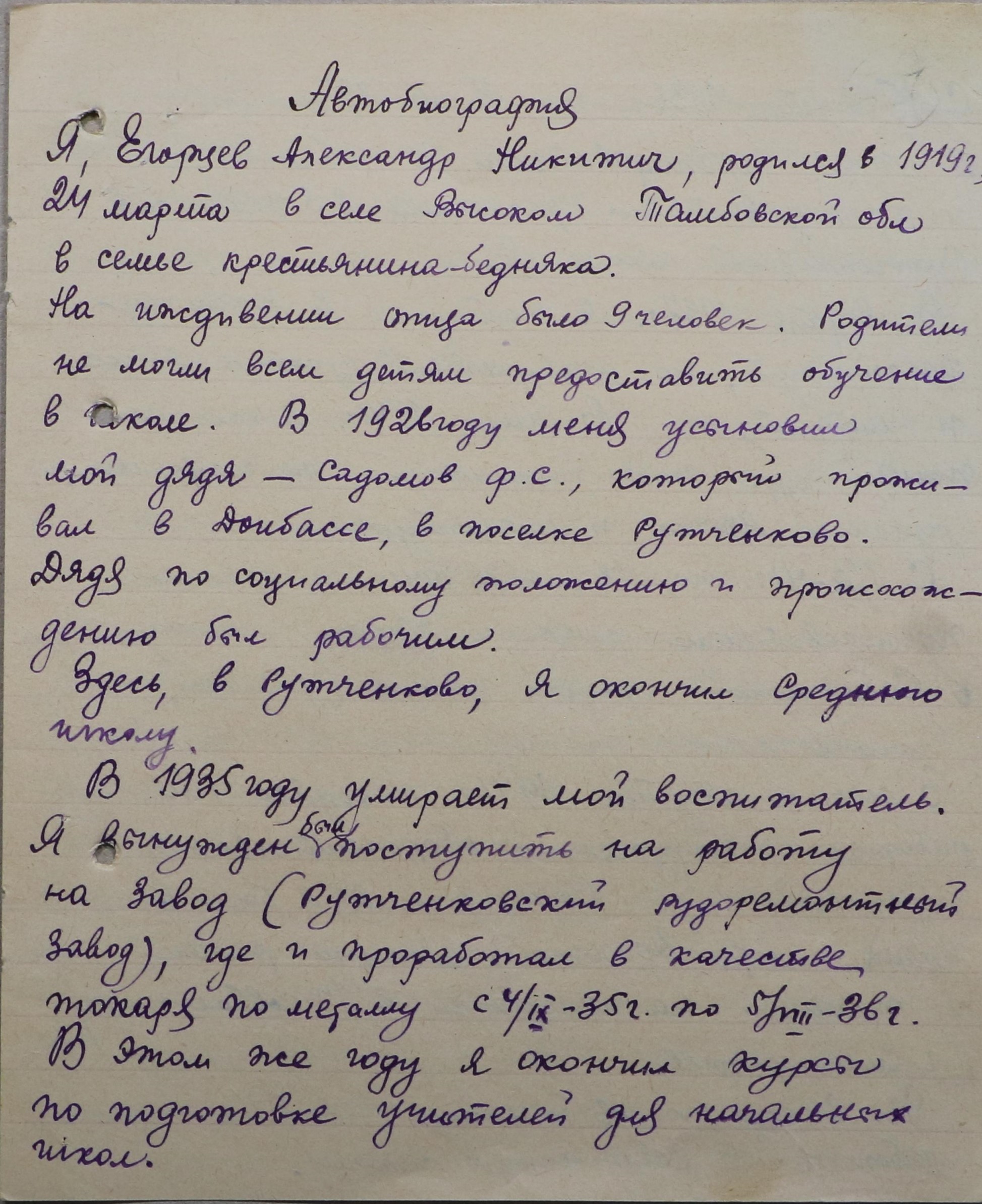 Из автобиографии хранящейся в ГАРК НИ и ЛС (Ф. 315. Оп. Лд. Д. 6. Л. 447-448):